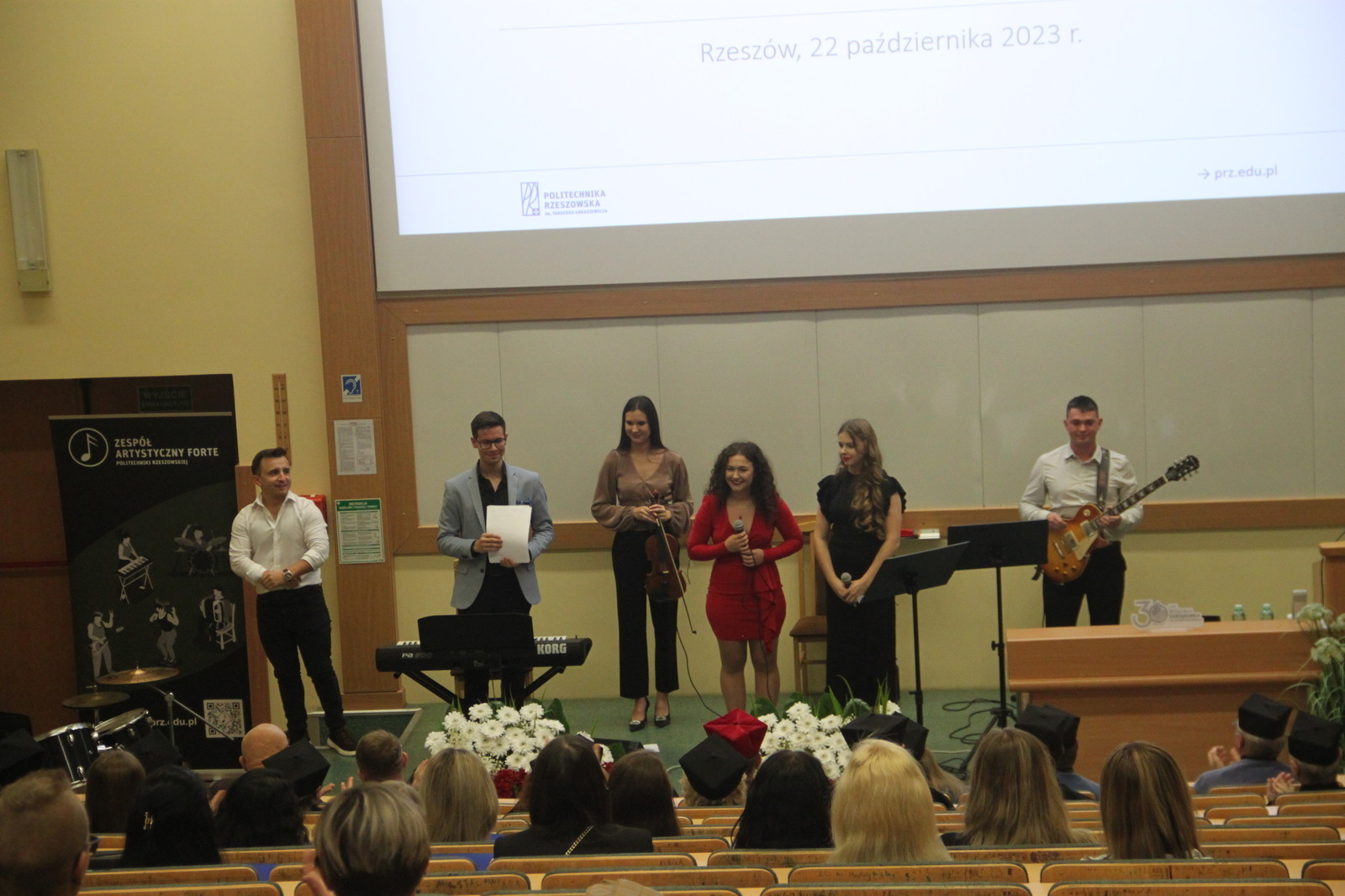 Studencki Zespół Artystyczny FORTE Politechniki Rzeszowskiej na uroczystości Graduacji Wydziału Zarządzania wystąpił w następującym składzie: