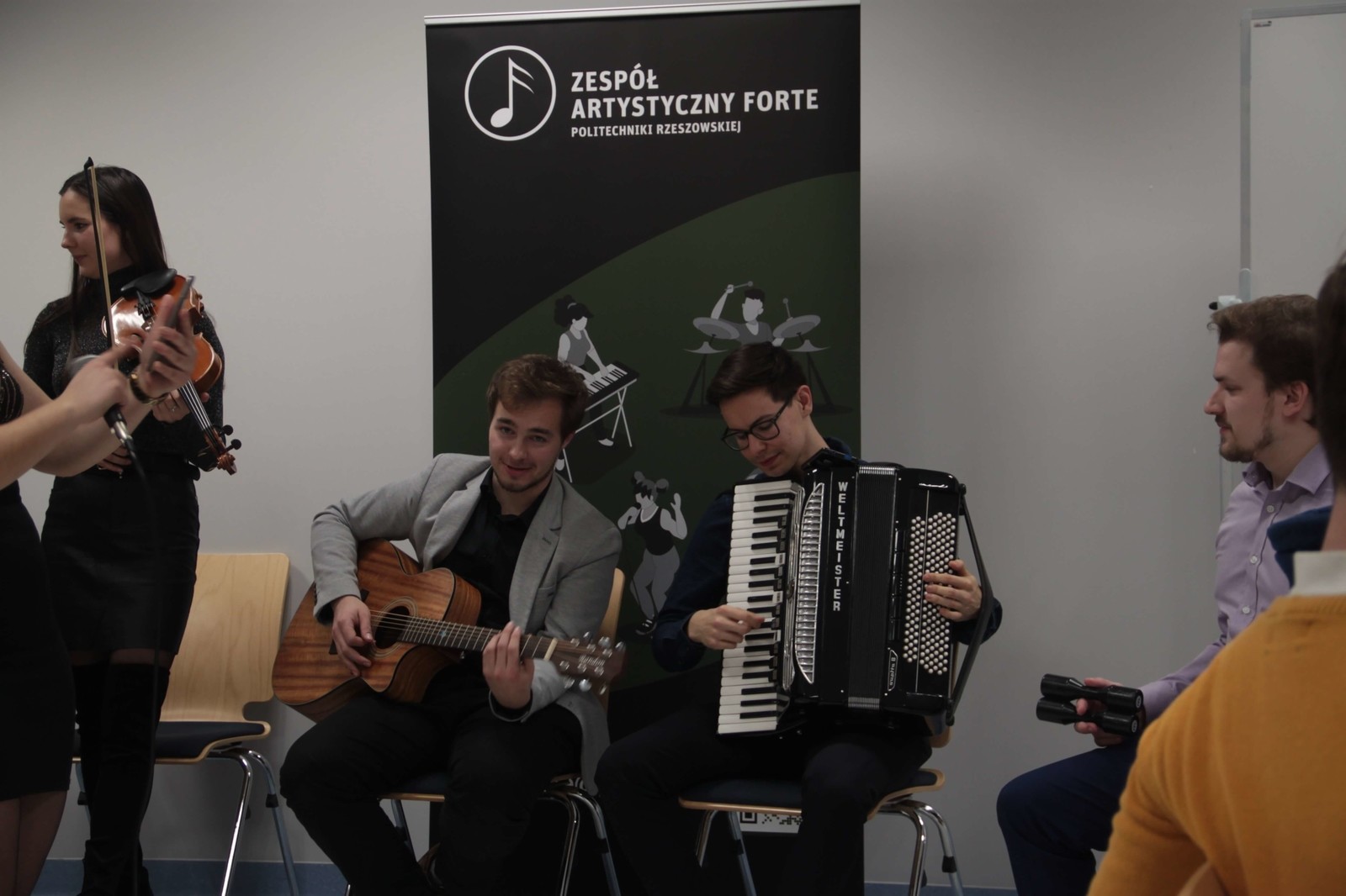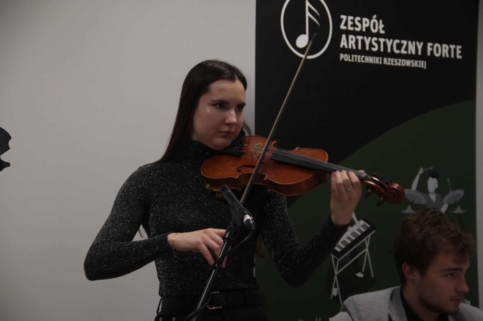 23 grudnia 2022 r. Studencki Zespół Artystyczny „FORTE” Politechniki Rzeszowskiej miał przyjemność zagrać na Wigilii Wydziału Zarządzania. Wydarzenie odbyło się na terenie Politechniki Rzeszowskiej w Zespole Sal Wykładowych. Wśród zgromadzonych gości znaleźli się: prezesi kół naukowych, starostowie Wydziału Zarządzania, członkowie Samorządu Studenckiego oraz Samorządu Wydziałowego. Swoją obecnością zaszczycił także prodziekan ds. kształcenia dr inż. Paweł Dobrzański.